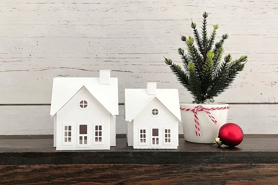 Mini houses are the perfect size to use as ornaments for your tree or in smaller tabletop holiday displays